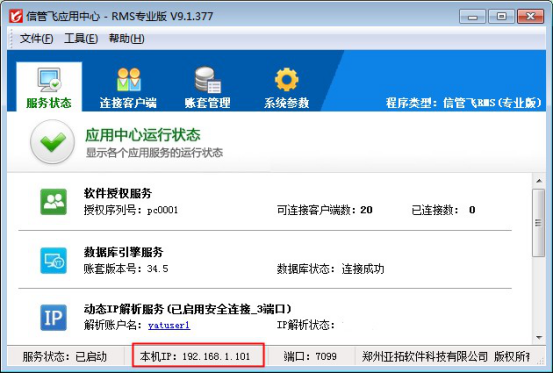 動態IP解析服務是亞拓軟件開發的基于互聯網的遠程連接解決方案,采用專屬安全技術,可以支持網絡版本在異地連接主機電腦進行共享數據使用。動態IP解析服務是增值服務,需要購買后分配賬號和密碼。如果客戶解析服務到期無法使用且到期更換為一個網絡下使用軟件,則不需要續費和連接動態IP解析服務的賬號登錄,直接連接本地的主機電腦的應用中心程序的IP地址進行使用。本文以信管飛RMS軟件進行示范動態IP解析服務更換為本地使用如何操作?