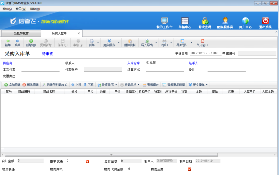 (1)首先我們采購(gòu)原材料,在采購(gòu)管理中開“采購(gòu)入庫(kù)單”采購(gòu)入庫(kù)原材料到我們的倉(cāng)庫(kù)。(如果是直接運(yùn)送到代加工廠,請(qǐng)?jiān)黾右粋(gè)虛擬倉(cāng)庫(kù)如“代工廠倉(cāng)庫(kù)”,原材料增加到這個(gè)操作,好處是:我們可以隨時(shí)掌握每次的材料消耗情況和剩余庫(kù)存情況)