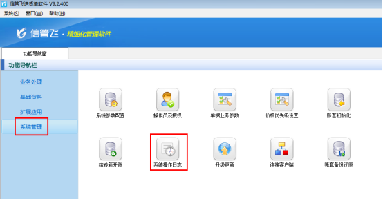信管飛RMS、信管飛送貨單軟件、信管飛出納記賬軟件、信管飛倉庫管理軟件和信管飛票據打印軟件都可以實現多個操作員登錄使用軟件的功能,操作員登錄軟件后,系統會生成操作日志,在系統操作日志管理中可以查看每個操作員的登錄退出記錄以及重要操作的記錄。通過查詢操作員的操作日志,可以掌握不同操作員的登錄退出情況,以及不同操作員的重要操作記錄。下面以信管飛送貨單軟件介紹一下如何查詢操作員的操作日志。