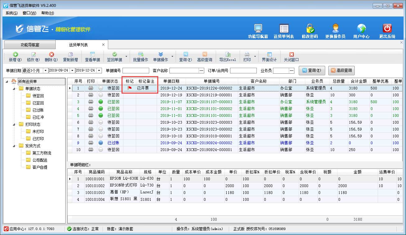 歡迎免費下載試用這款可以對送貨單列表標記備注的送貨單打印軟件:信管飛送貨單軟件。