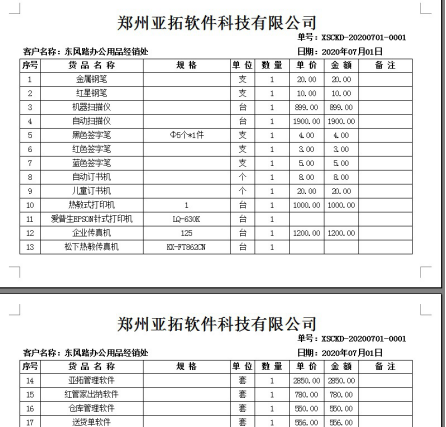 信管飛送貨單軟件、信管飛倉庫管理軟件、信管飛RMS軟件等都支持自定義設計打印模板。打印模板格式是根據打印紙張尺寸進行設計,如存在一頁打印不完的單據,默認第二頁打印仍顯示表頭信息,如下圖所示,為了避免浪費,可設置表頭信息僅在第一頁顯示。本文以“信管飛送貨單軟件”為例,進行示范。