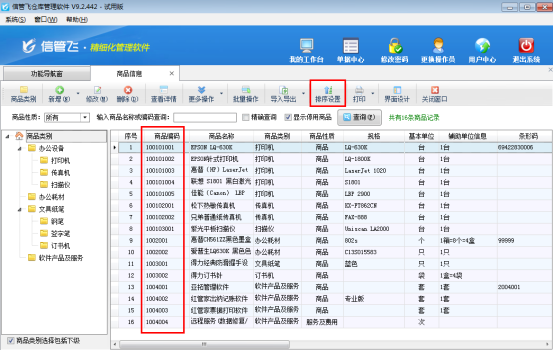 信管飛送貨單軟件、信管飛倉庫管理軟件、信管飛RMS(進銷存一體化軟件)開單時都可以直接從商品信息中選擇已有的商品進行快速開單,軟件都支持對商品信息進行排序。開單添加明細時彈出的“選擇商品”窗口中商品信息顯示的先后順序如果需要調整,可以到商品信息中調整。下面我們以信管飛倉庫管理軟件為例介紹一下對商品信息排序的操作方法。