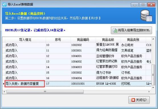 導入失敗,數(shù)據(jù)內(nèi)容重復:這種情況是因為軟件根據(jù)條件判斷相應的記錄在數(shù)據(jù)庫中已存在(一般根據(jù)名稱,如商品名稱、商品編碼等),如果確實需要導入,可以取消下圖中的選項,重新導入。