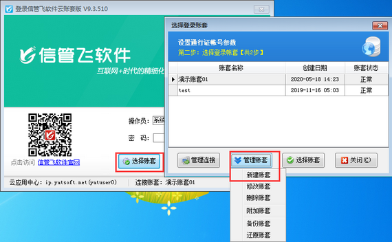 在云賬套登錄界面,點(diǎn)擊“選擇賬套”,打開(kāi)“選擇登錄賬套”界面,點(diǎn)擊“管理賬套”—》“新建賬套”,新建一個(gè)空賬套,并選擇新建的賬套進(jìn)行登錄。