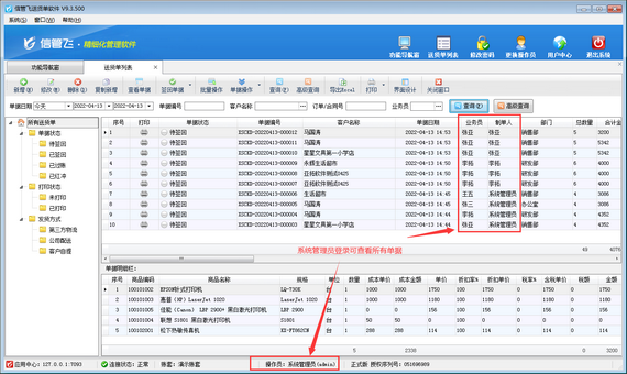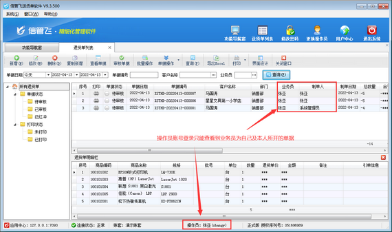 歡迎下載試用這款支持設置操作員只能查看本人送貨單、退貨單的送貨單打印軟件:信管飛送貨單軟件。