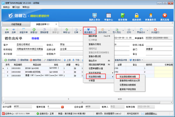 推送微信消息接收人員支持推送給業(yè)務員、客戶,系統(tǒng)內支持邀請業(yè)務員及客戶綁定微信賬號,業(yè)務員及客戶綁定微信賬號后,在軟件內開單時即可對業(yè)務員及客戶綁定微信賬號推送業(yè)務單據(jù)消息。本篇文章介紹一下如何設置自動發(fā)送微信消息?
