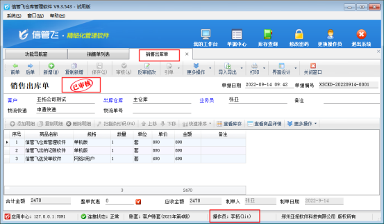 信管飛倉庫管理軟件、信管飛RMS軟件等支持新增多個(gè)操作員并可設(shè)置操作員權(quán)限,有用戶需要開銷售單需要多人審核,軟件支持設(shè)置多級(jí)審核,本文以“信管飛倉庫管理軟件”為例示范下單據(jù)多級(jí)審核功能如何使用?