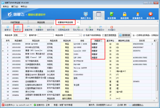 信管飛RMS軟件和信管飛倉庫管理軟件商品信息可輸入銷售部門,可以按部門管理商品,開單選擇商品時可按部門進行控制顯示的商品信息,本文以“信管飛RMS軟件”為例示范下如何設置選擇商品窗口僅顯示部門相關商品?