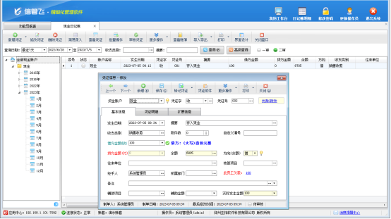 信管飛出納記賬軟件是一款集現(xiàn)金/銀行日記賬、應(yīng)收應(yīng)付款管理、工資管理、發(fā)票管理等為一體的綜合性財(cái)務(wù)出納管理軟件,部分用戶在登記日記賬時(shí),為了提高效率,可能需要復(fù)制之前日記賬信息進(jìn)行新增,軟件內(nèi)支持直接復(fù)制新增日記賬憑證,本篇文章以“信管飛出納軟件”為例介紹一下如何進(jìn)行復(fù)制新增憑證?