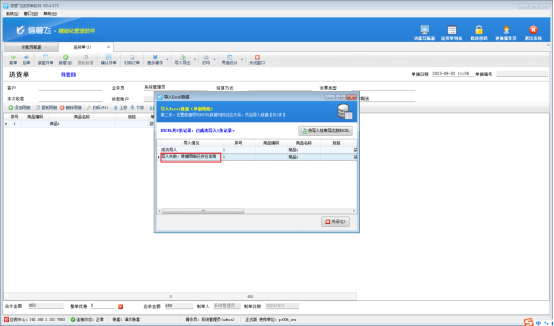 送貨單開單界面,直接導入EXCEL明細出現提示“導入失敗,單據明細已存在”,這是因為導入的明細數據有重復導致的: