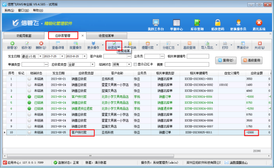 信管飛RMS軟件是集采購管理、銷售管理、倉庫管理、往來應(yīng)收應(yīng)付款管理為一體的軟件,軟件支持登記客戶預(yù)付款,客戶下單前可先支付定金,有用戶咨詢上月的預(yù)付款還未結(jié)銷需要退回一部分,軟件中該如何操作?本文以信管飛RMS軟件為例進(jìn)行示范下。