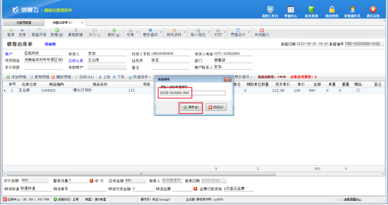 用操作員“張亞”登錄軟件,開單界面修改單據編號,出現以下提示:
