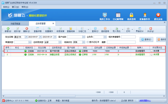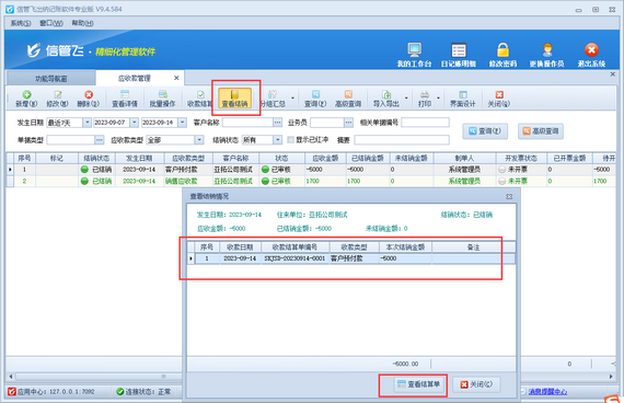 信管飛出納記賬軟件支持往來應收應付款管理功能,可使用客戶預付款沖銷銷售應收款。如果客戶預付款已結銷,如何查看此筆客戶預付款實際沖銷的是哪筆應收款呢,本篇文章介紹一下操作方法。