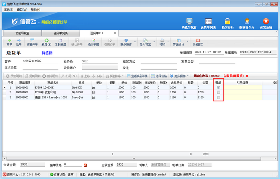 在實際產品銷售過程中,會出現贈送客戶贈品的情況,信管飛系列軟件在開單時支持錄入贈品,如下圖所示。