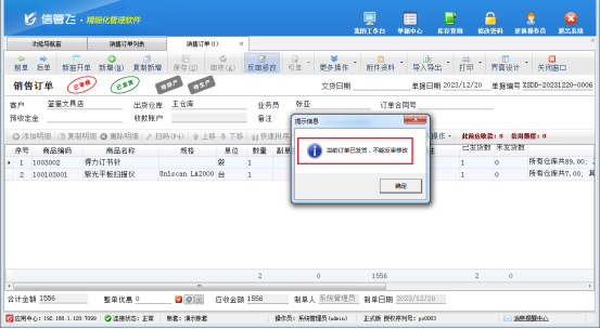 修改已發貨訂單時提示“當前訂單已發貨,不能反審修改”,如何解決?
