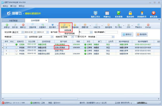 信管飛送貨單軟件、信管飛RMS軟件等支持開單生成對應的應收款,應收款結算支持按客戶分時段結算,比如需要把上月的客戶所有未結銷的應收款全部結算,軟件中操作流程本文以“信管飛RMS軟件”進行示范。