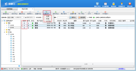 歡迎免費下載試用這款支持批量反審憑證出納記賬軟件信管飛出納記賬軟件
