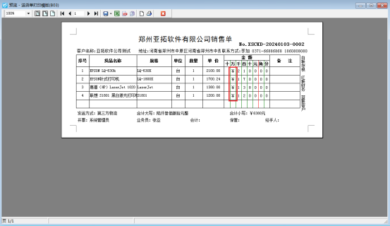 點(diǎn)擊保存打印模板,預(yù)覽打印樣式: