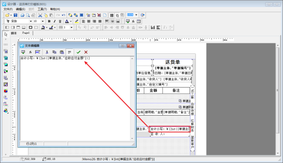 需要打印模板金額取整不進行四舍五入,在開單界面打印下點擊“打印格式設計”,選擇打印模板,點擊“設計格式”進入模板設計器,金額取整不進行四舍五入需要調用函數(shù),打開金額文本框,復制取整調用數(shù)據(jù)項:[Int([單據(jù)主體."應收應付金額"])],然后確認保存,如下圖: