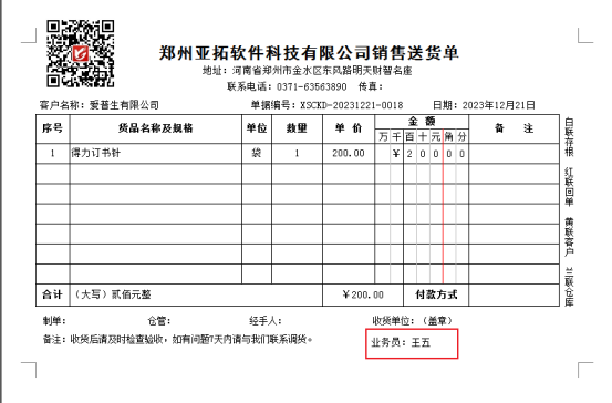 信管飛系列軟件都支持自定義設(shè)計(jì)打印模板,有用戶需要在模板中添加業(yè)務(wù)員打印,該如何操作呢?本文以“信管飛送貨單軟件”為例進(jìn)行示范下。