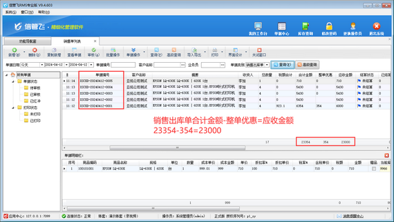 部分用戶在使用信管飛軟件時,存在以下問題,銷售單列表底部“合計金額 - 整單優惠≠應收金額”,無法查明原因,如下圖所示。