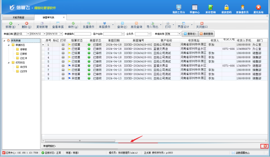 第二種情況:單據明細欄最小化,進入列表界面,軟件右下角顯示