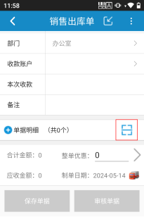 操作流程如下:開單人員打開開單界面,點(diǎn)擊單據(jù)明細(xì)掃描按鈕進(jìn)入掃碼界面,在掃碼界面掃碼添加商品明細(xì),如下圖所示: