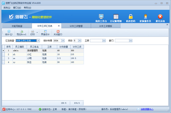 生成工資報表:你可以根據需要,自定義工資報表的樣式和內容。系統會根據員工的計件數據,自動生成相應的工資報表,方便你進行工資核算和發放。