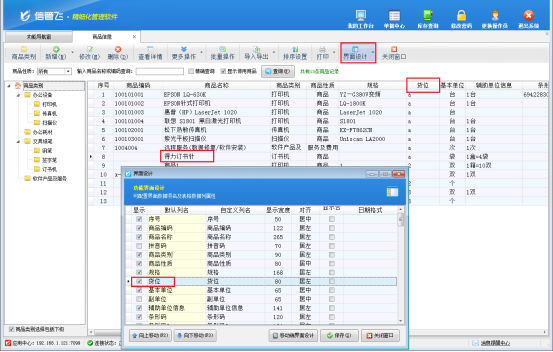 商品信息界面點(diǎn)界面設(shè)計(jì),可以把貨位顯示出來(lái),方便快速查看。