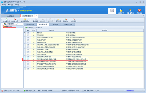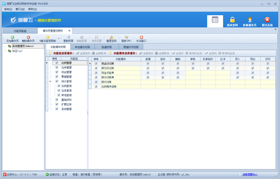 信管飛出納記賬軟件是一款功能全面、操作簡便的財務(wù)管理軟件,廣泛應(yīng)用于各類企業(yè)的日常出納和記賬工作。其中,最引人注目的便是其操作員權(quán)限設(shè)置功能。通過這一功能,企業(yè)可以根據(jù)需要設(shè)置不同操作員的權(quán)限,確保他們只能訪問和操作自己職責(zé)范圍內(nèi)的內(nèi)容。