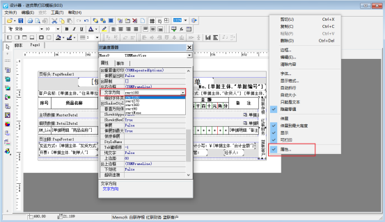雙擊右側多聯備注文本框,輸入多聯備注內容,選中多聯備注文本框,右鍵選擇屬性,修改文本框的“文字方向”屬性為“rmrt180”,如圖所示: