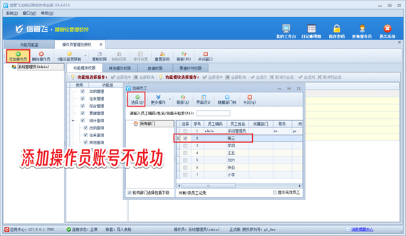 演示視頻觀看鏈接:信管飛軟件操作員賬號添加不成功,如何解決演示視頻