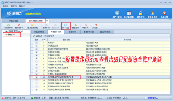 信管飛出納記賬軟件:精準權限管理,實現操作員資金賬戶余額隱身