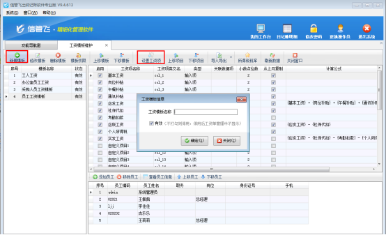 支持軟件啟用工資模板權限,在工資模板維護界面支持設置每個模板的可查看人員,選擇后使用操作員登錄在工資模板維護界面僅顯示允許自己查看的工資模板。