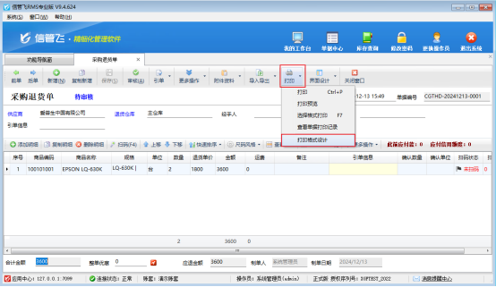 信管飛系列軟件支持自定義設(shè)計(jì)打印模板格式,打印預(yù)覽顯示正常,遇到紙張打印出來(lái)內(nèi)容缺失一部分的問(wèn)題。以采購(gòu)?fù)素泦未蛴∧0鍨槔痉断氯绾谓鉀Q打印缺失一部分內(nèi)容的問(wèn)題?