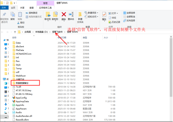 選擇桌面圖標(biāo),點擊鼠標(biāo)右鍵選擇“打開文本位置”,可打開文件保存位置,選擇“信管飛軟件”文件夾,復(fù)制整個文件夾到新電腦上,如果文件過大,可把“賬套備份文件”中的之前日期數(shù)據(jù)刪除。如下圖所示: