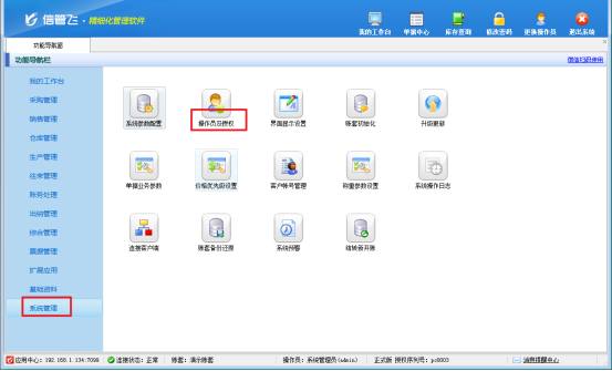 在功能導航窗點擊“系統管理”—》“操作員及授權”打開操作員管理及授權界面,選擇操作員“張亞”,然后在其右側的功能模塊權限內找到“統計查詢”下的“銷售查詢”,將“銷售毛利匯總表”以及“銷售毛利明細查詢”勾選取消,然后保存權限設置,如下圖所示。