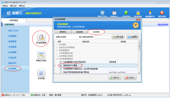 規(guī)格參與計(jì)算需要先啟用系統(tǒng)參數(shù)“商品規(guī)格為計(jì)量值”,如圖所示。
