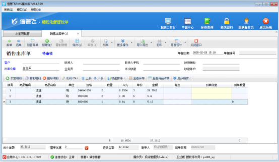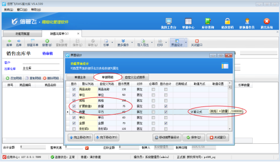 信管飛RMS(進(jìn)銷存管理軟件)、信管飛送貨單軟件、信管飛倉庫管理軟件等開單默認(rèn)是根據(jù)單價(jià)*數(shù)量自動計(jì)算得出金額,如有其他的數(shù)據(jù)計(jì)算需求,軟件也支持自定義計(jì)算公式,本篇文章以銷售出庫單為例介紹一下如何自定義平方的計(jì)算公式?
