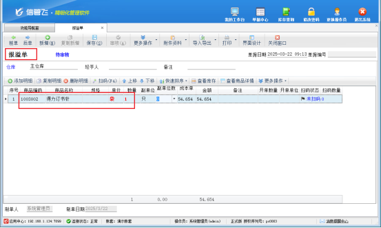 相反,如果軟件中的庫存數量多于實際倉庫中的數量,這時我們可以開報損單進行調整庫存數量。同樣在功能導航窗中點擊“倉庫管理”-“報損單”,進入操作界面后,選擇倉庫、選擇商品和數量,然后保存并審核。審核通過后,相應商品的庫存數量就會相應減少,讓賬面庫存與實際庫存一致。