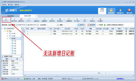 在數(shù)字化財務(wù)管理中,精準的權(quán)限管理是保障數(shù)據(jù)安全與效率的核心。若操作員賬號登錄信管飛出納記賬軟件后無法新增日記賬憑證,通常源于權(quán)限配置未啟用。本篇文章為您呈現(xiàn)高效解決方案。