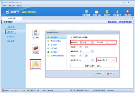 1.自定義編碼規則:根據企業需求設置前綴(如商品類別編碼、所屬部門編碼、固定字符)、分隔符、流水號樣式、流水號等組合規則;