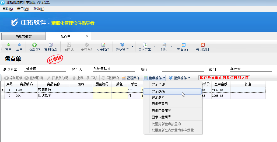 企業(yè)的存貨因為數(shù)量較多、收發(fā)頻繁在實際管理過程中可能因為計量誤差、管理不善、自然損耗等原因而導致庫存數(shù)量與賬面數(shù)量不相符合。為了掌握貨物流動情況,核實賬面庫存數(shù)量與實際倉庫庫存數(shù)量是否一致,需要定期或不定期的對庫存數(shù)量進行清單盤查。實際工作中月底盤點時工作量相當大,亞拓管理軟件和亞拓倉庫管理軟件中提供的盤點單,可以直接錄入盤點清查數(shù)量(即實際倉庫庫存數(shù)量),軟