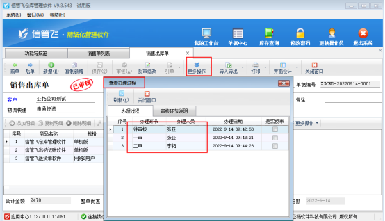 信管飛倉庫管理軟件、信管飛RMS軟件等支持新增多個操作員并可設(shè)置操作員權(quán)限,有用戶需要開銷售單需要多人審核,軟件支持設(shè)置多級審核,本文以“信管飛倉庫管理軟件”為例示范下單據(jù)多級審核功能如何使用? 軟件多級審核最多支持5級審核,支持設(shè)置各類單據(jù)。本文以“銷售出庫單”為例示范。首先需啟用參數(shù),在功能導(dǎo)航窗