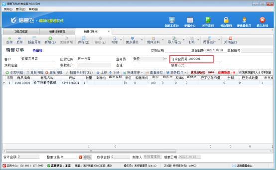 信管飛RMS軟件支持開銷售訂單保存自動(dòng)生成對(duì)應(yīng)的單據(jù)編號(hào),同時(shí)軟件支持開單錄入自定義編號(hào)(訂單合同號(hào)),部分用戶在開銷售訂單錄入自定義編號(hào)時(shí)會(huì)出現(xiàn)編號(hào)無法直接錄入的情況,本篇文章以信管飛RMS軟件為例介紹下如何解決開銷售訂單時(shí)自定義編號(hào)無法錄入的問題? 在功能導(dǎo)航窗點(diǎn)擊“銷售管理”—》“銷售訂單”,進(jìn)