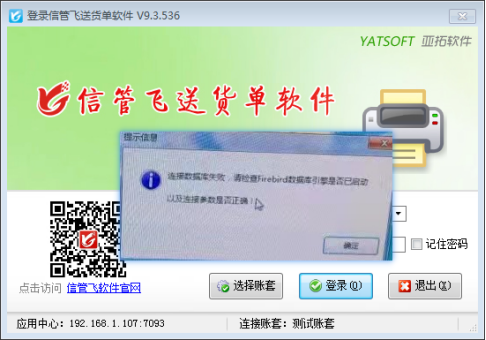 演示視頻觀看鏈接:登錄軟件提示連接數(shù)據(jù)庫(kù)失敗解決方法演示視頻 部分用戶在登錄軟件時(shí)可能會(huì)提示“連接數(shù)據(jù)庫(kù)失敗,請(qǐng)檢查Firebird數(shù)據(jù)庫(kù)引擎是否已啟動(dòng)以及連接參數(shù)是否正確!”,導(dǎo)致軟件登錄不上,如下圖所示: 出現(xiàn)這