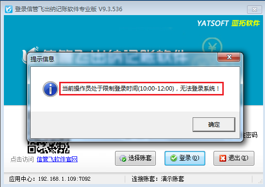 此文章演示視頻觀看鏈接:[InstallDir_ChannelDir]video/202301/1858.html 為了使用戶可以更好的管理公司賬套數(shù)據(jù),信管飛RMS、信管飛出納記賬軟件、信管飛倉(cāng)庫(kù)管理軟件都支持設(shè)置操作員的登錄限制,系統(tǒng)管理員可以自定義設(shè)置操作員登錄軟件的時(shí)間,設(shè)置后,操作員在受限制