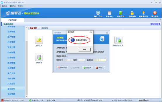 演示視頻觀看鏈接:RMS專業(yè)版存在期初庫(kù)存啟用賬套啟用不了如何解決? 信管飛RMS專業(yè)版支持財(cái)務(wù)處理模塊,存在會(huì)計(jì)科目。新用戶使用軟件時(shí),在賬套啟用前錄入了期初入庫(kù)單,錄入庫(kù)存數(shù)量和成本,保存后在賬套啟用界面點(diǎn)擊啟用賬套,會(huì)提示如圖以下消息,啟用不了賬套。