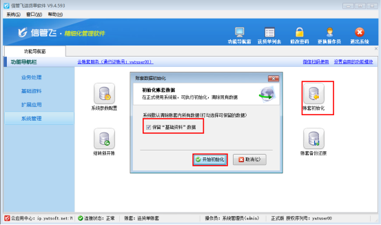 初始化賬套可一鍵清除所有數(shù)據(jù),信管飛軟件均支持此操作。此功能一般用于新開始使用軟件或者年初重新使用時(shí)操作,云賬套版本是按賬套數(shù)管理,數(shù)據(jù)存在云端,如果需要保留基礎(chǔ)資料重新使用,該如何操作?     演示賬套觀看鏈接:云賬套版本如何初始化賬套?     云賬套版本初始化后