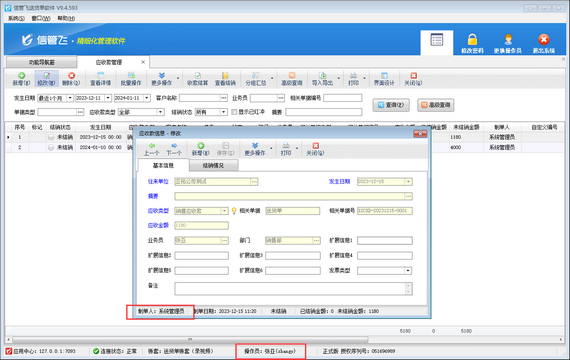 信管飛送貨單軟件支持設(shè)置多個(gè)操作員并對(duì)操作員賬號(hào)設(shè)置操作權(quán)限,有用戶登錄軟件無法修改應(yīng)收款信息,系統(tǒng)彈出提示“當(dāng)前記錄為其它操作員錄入的,您沒有權(quán)限修改!”,如下圖所示。    演示視頻觀看鏈接:操作員無法修改其他人員錄入的應(yīng)收款,如何解決演示視頻    出現(xiàn)以上問題的原因是:當(dāng)前登錄的操作員賬號(hào)沒有